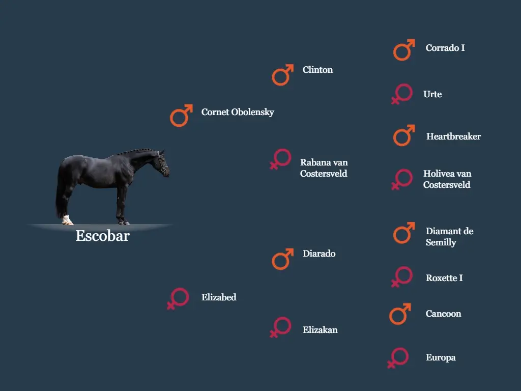 Introducing Escobar — a 5-year-old black gelding by the legendary Cornet Obolensky out of a Diarado mare, combining two of Europe’s most sought-after bloodlines. His striking presence, elegant head, and naturally expressive movement make him the kind of horse that turns heads the moment he steps into the ring.